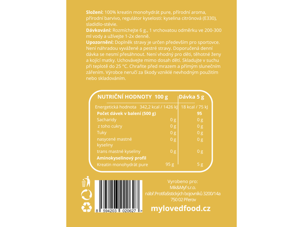 Kreatin monohydrát je jedním z nejlépe prozkoumaných doplňků – tvoří přirozenou součást energetického metabolismu našeho těla. Doplnění kreatinu má smysl nejen pro sportovce, ale i pro každého, kdo chce mít energii na trénink, práci i volný čas.
