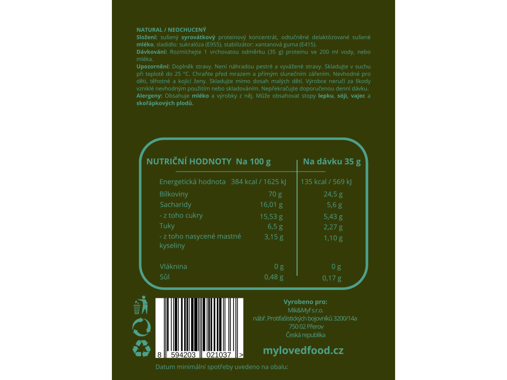 V MyLovedFood víme, že mnoho z vás si rádo tvoří vlastní chuťové kombinace nebo zkrátka preferuje naturální chuť mléčného proteinu. Varianta Natural je neuvěřitelně univerzální, skvěle stravitelná a nabízí nekonečné možnosti, jak ji zařadit do vašeho jídelníčku.